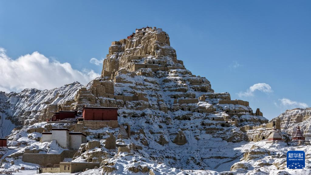 1月24日,西藏阿里地区札达县迎来降雪,全国重点文物保护单位古格王国遗址披上银装,呈现壮美雪景。