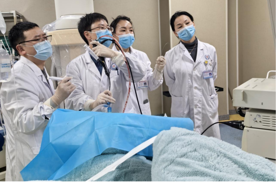 在气管镜引导下,团队迅速将气管插管送入左侧支气管,确保左肺能够正常接收氧气;同时,团队医护人员配合默契,通过气管镜快速、彻底地清理气道内的血凝块,一点点疏通堵塞的通道。