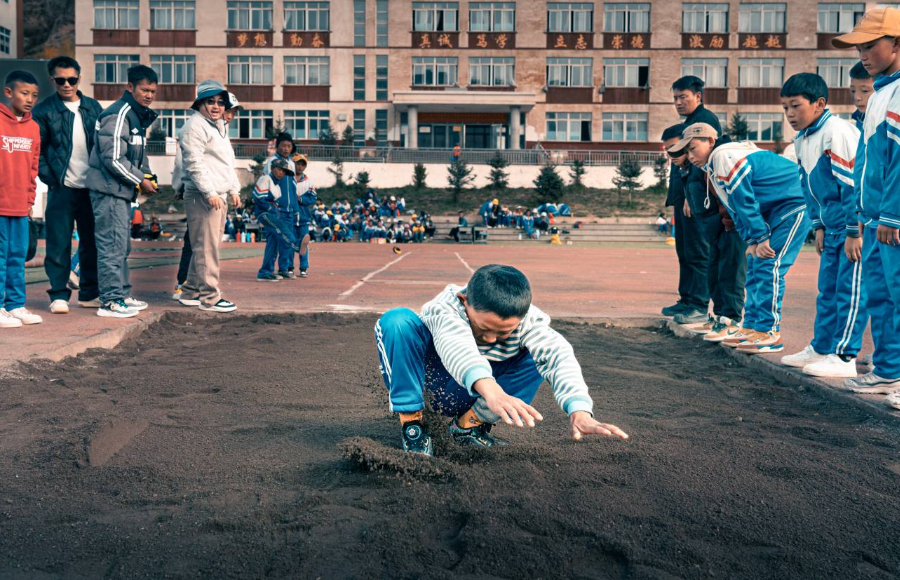 这组作品,是西藏昌都市丁青县协雄乡小学运动会上的“青春切片”。鼓点震落晨光,彩袖裹着童真,石阶上的目光追着赛场的跃动,沙坑里的身影溅起青春的锋芒。