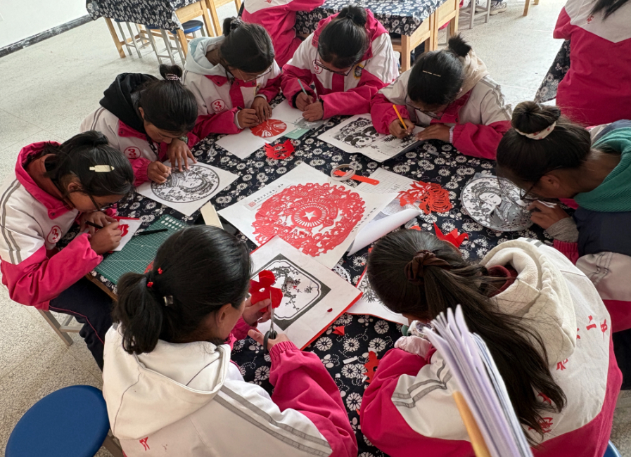 在学校剪纸社团里,学生们专注地沿着线条细细裁剪,精巧的福字、飘逸的祥云跃然纸上。“学剪纸、练书法,不仅能让学生学会新技能,更能感受到中华优秀传统文化的魅力。”南木林县第二中学教师崔现英说。