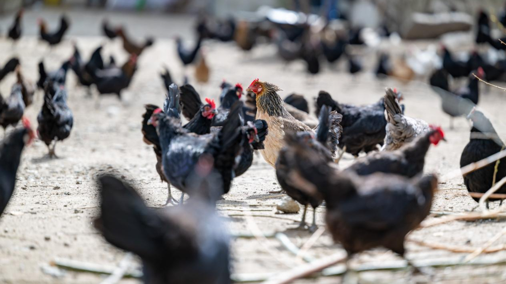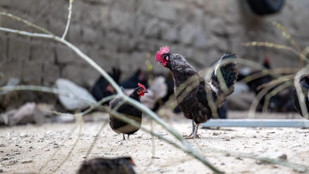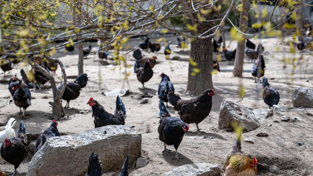 图为合作社散养的藏鸡(3月26日摄)。新华网 旦增努布 摄