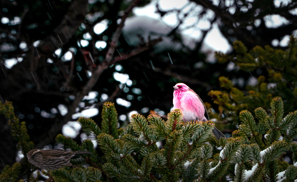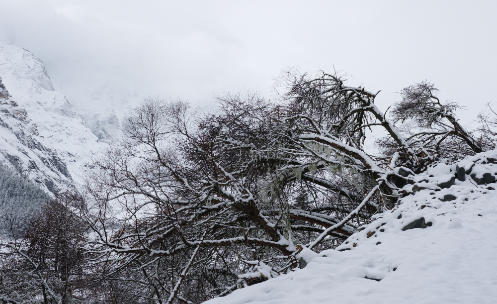 桃花灼灼映冰川
