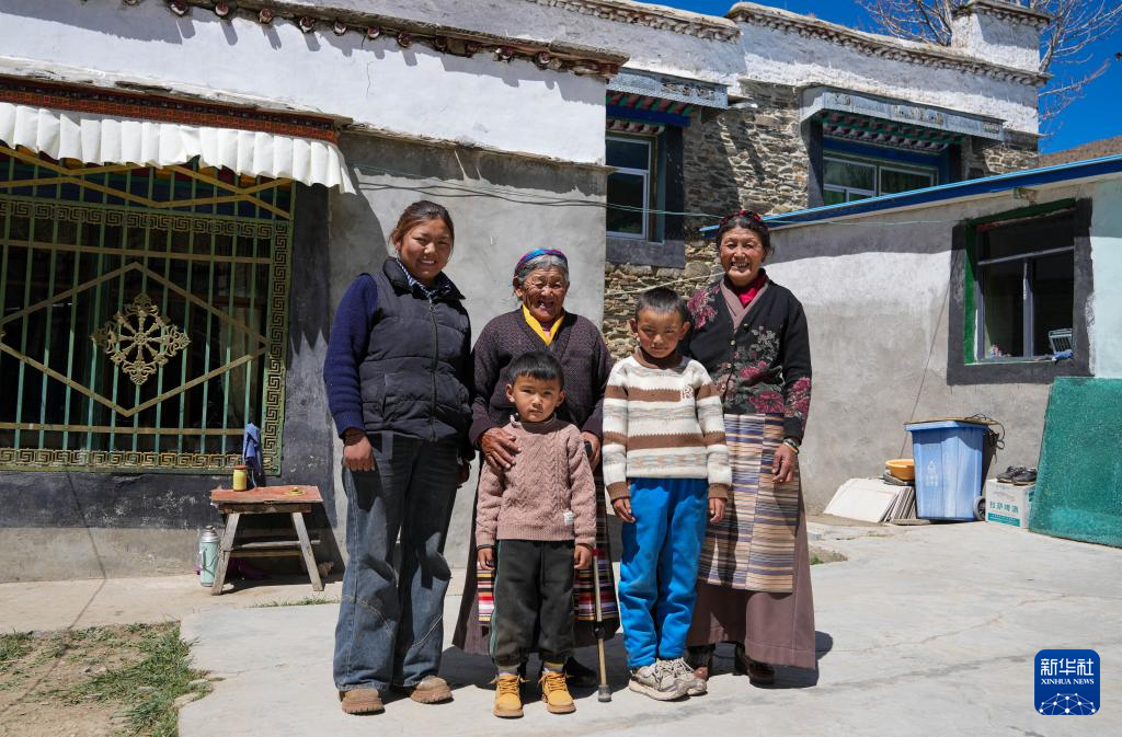 次仁桑姆和家人在宗卡村家中合影(3月26日摄)。